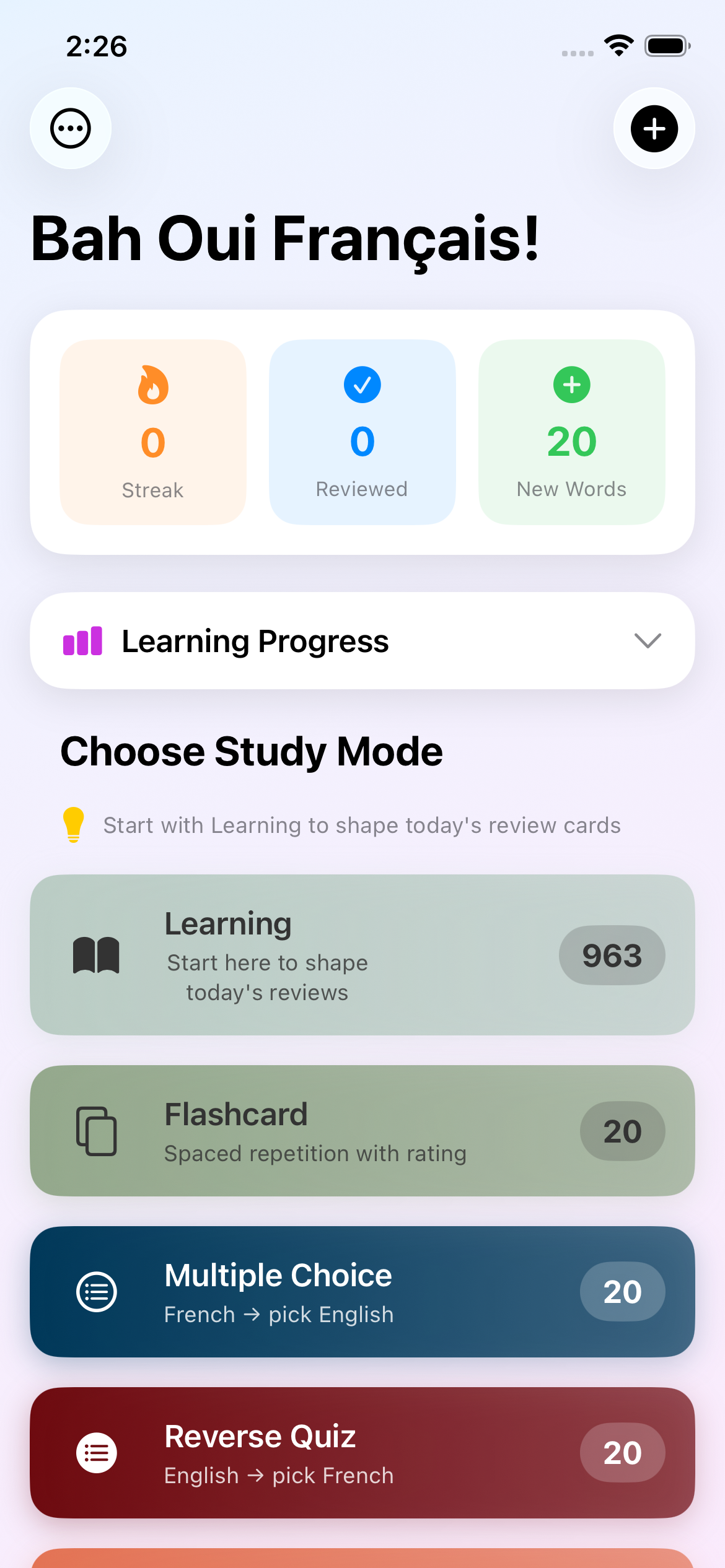 Six study modes.